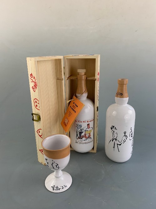 Sulla acquisto di n° 2 calici verrà omaggiata un bottiglia in ceramica decorata da Tullio Mazzotti